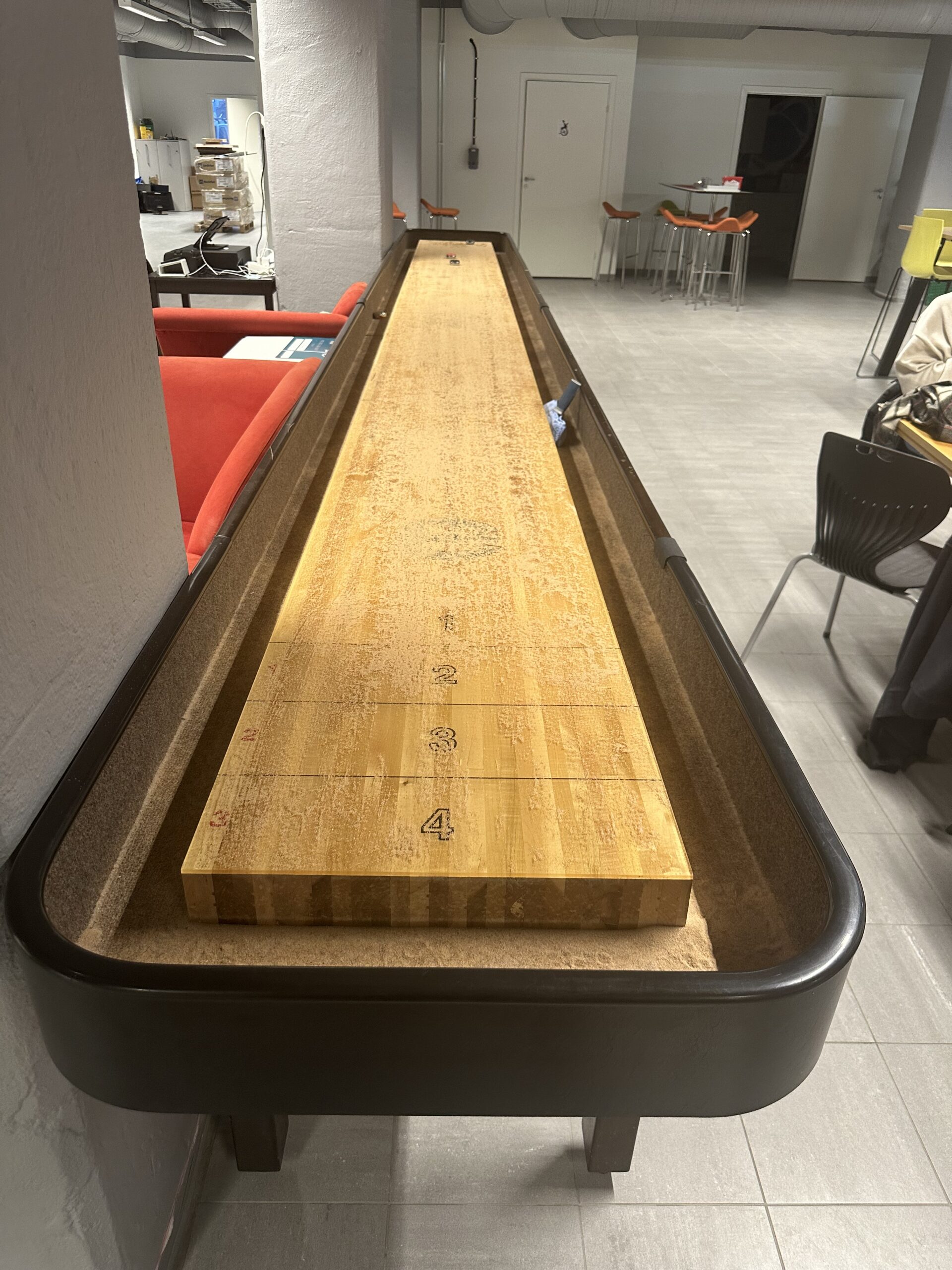 Det nye shuffleboardet arvet fra Dama di er blitt et populært samlingspunkt for alle som besøker Kirkens bymisjon i de nye lokalene i Bodø sentrum.